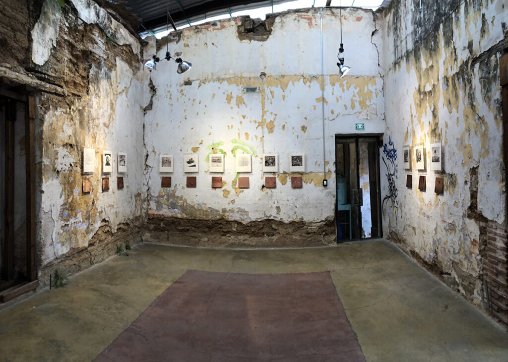 Entramos a esta casa, a este complejo de cuartos cicatrizados. Aprovechamos y observamos antes que nadie Valles Ciegos. Cambio de escenario y las imágenes pasan a otro plano. Los materiales se vuelven relevantes. El espacio cobra fuerza y los pasos que doy retumban con ecos de una historia que se torna apocalíptica. Una carpeta gráfica se ha ido desplegando desde el pasado inmediato. La muestra ahora proyecta un futuro gris. Distopía. La historia de los lugares. Las posibilidades de Oaxaca enmarcadas por el momento de la ruina, por el sonido de lo mundano y por el brillo del grabado, del oficio artístico más tradicional, del papel y de la placa. Y noto que los reflejos se funden con las rayas de las paredes, los gestos de las líneas con la secuencia de ocres, con las capas de la pared y con los soportes del propio edificio. Una pregunta personal: ¿así se siente Oaxaca ahora? Me parece que estoy develando nuestros encuentros con este territorio/idea/lenguaje que es Oaxaca. Entonces regreso a la dinámica de este momento.